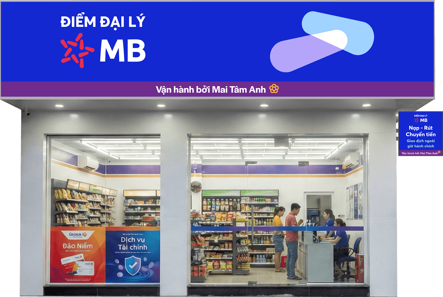 Phạm vi rộng: Hỗ trợ nộp tiền mặt vào tài khoản MB hoặc gửi bất kỳ ngân hàng nào trong nước.